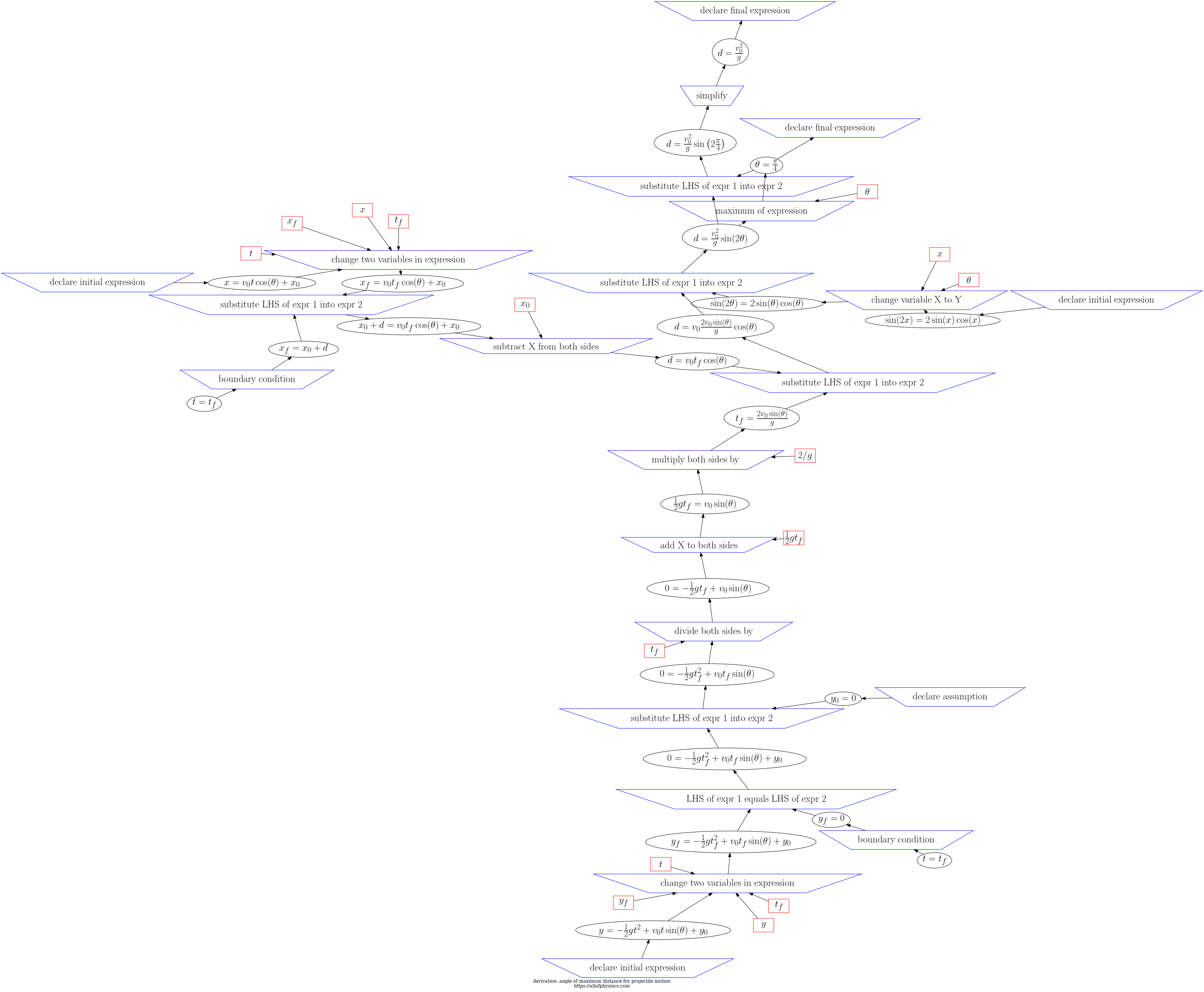 d3js visualization of steps and expressions in angle of maximum distance for projectile motion