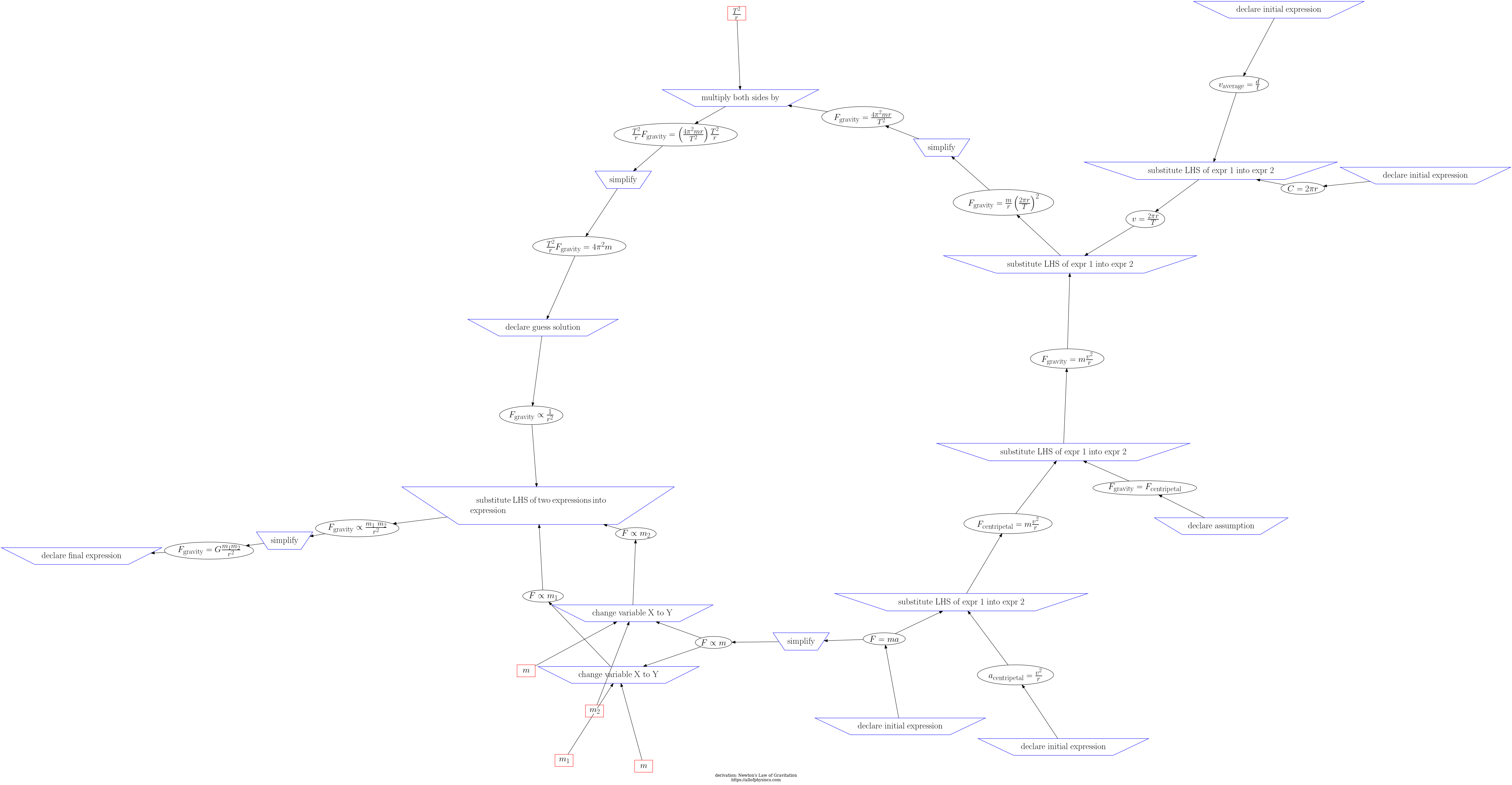 d3js visualization of steps and expressions in Newton's Law of Gravitation