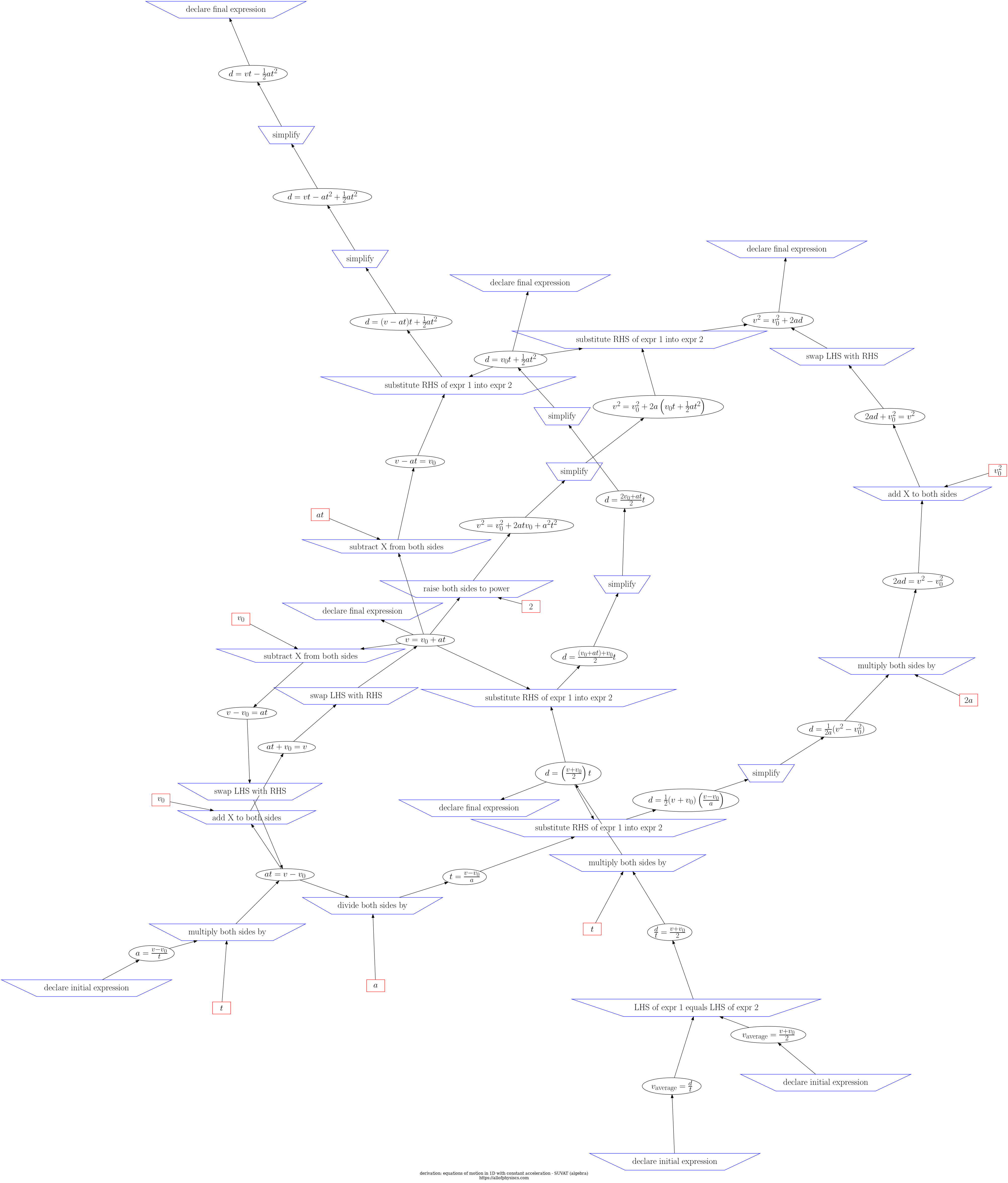 d3js visualization of steps and expressions in equations of motion in 1D with constant acceleration - SUVAT (algebra)