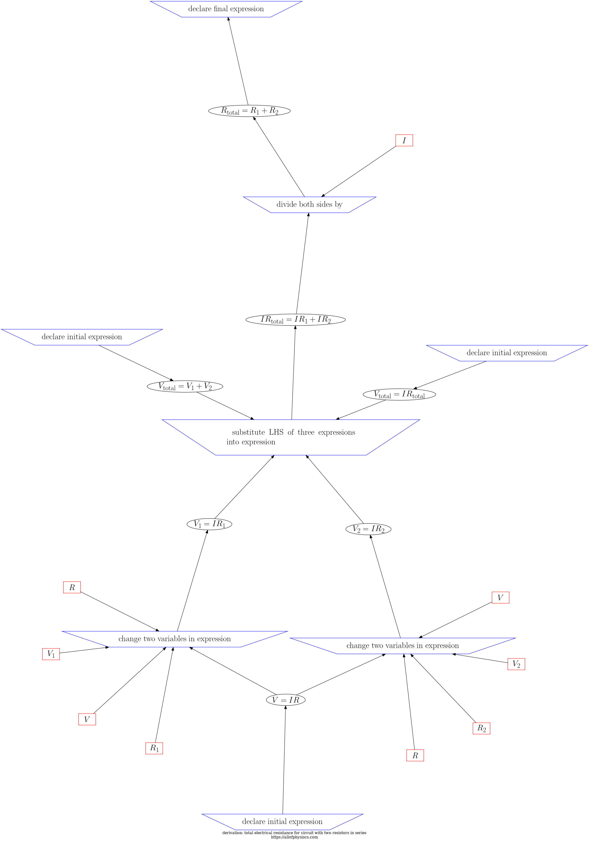 d3js visualization of steps and expressions in total electrical resistance for circuit with two resistors in series