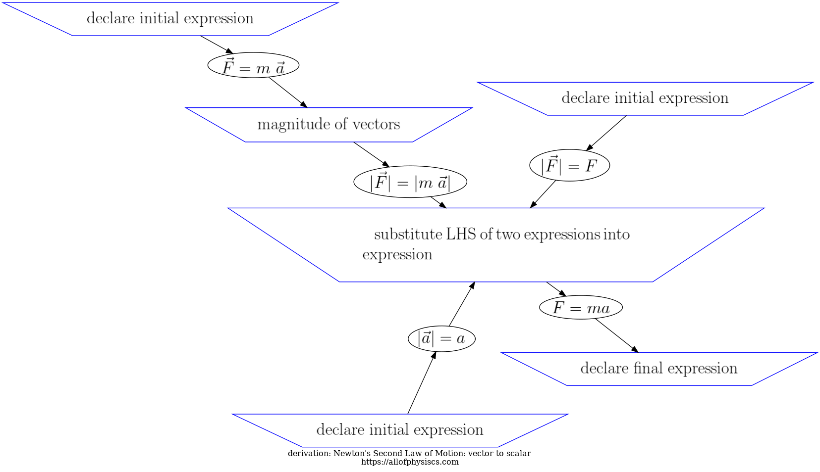 d3js visualization of steps and expressions in Newton's Second Law of Motion: vector to scalar